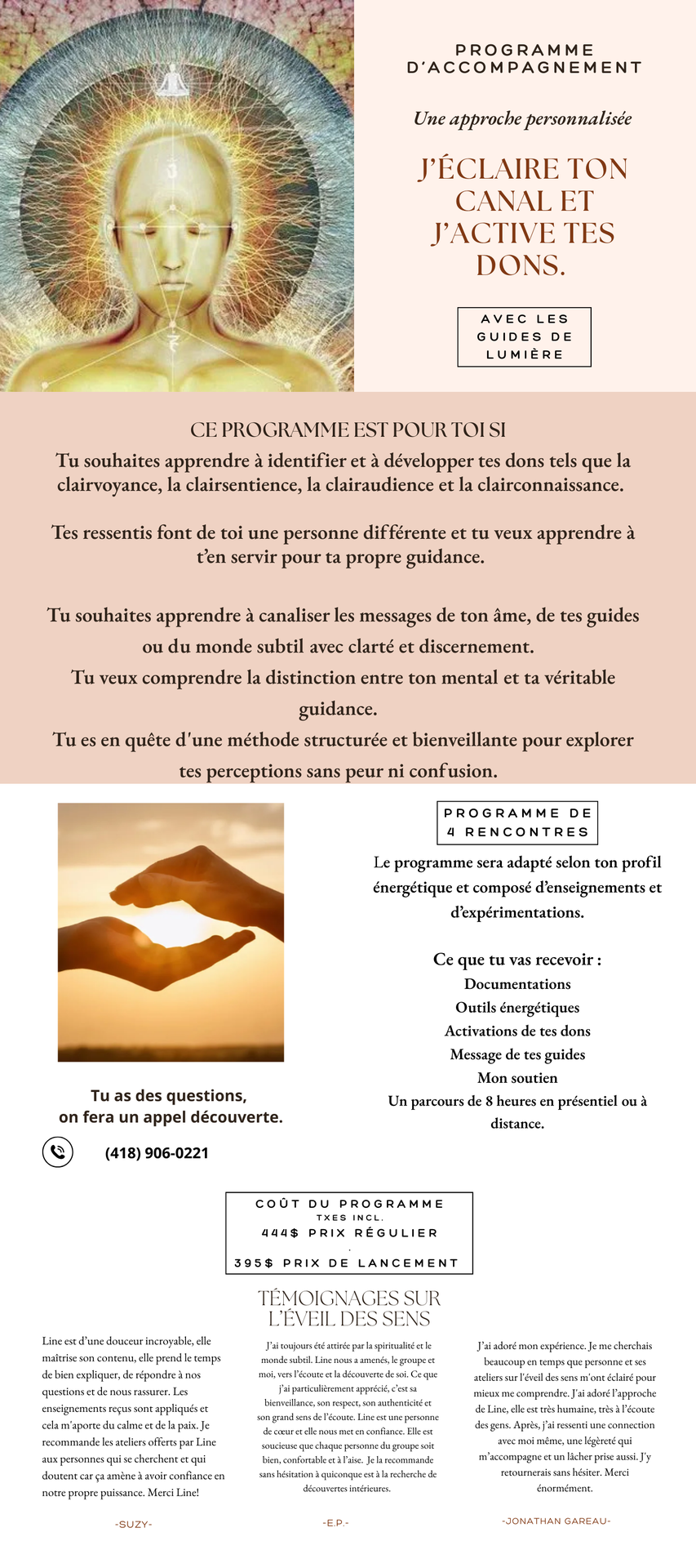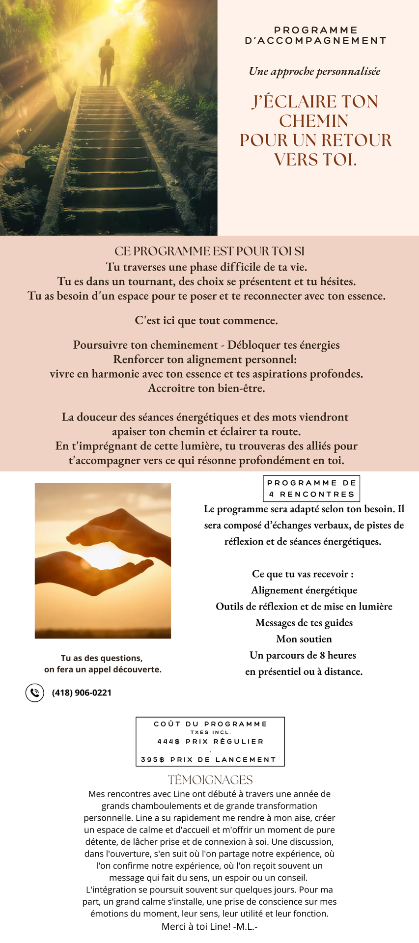 Un accompagnement combinant les séances énergétiques, les messages bienveillants, au besoin les oracles et le temps nécessaire pour t'accomplir.